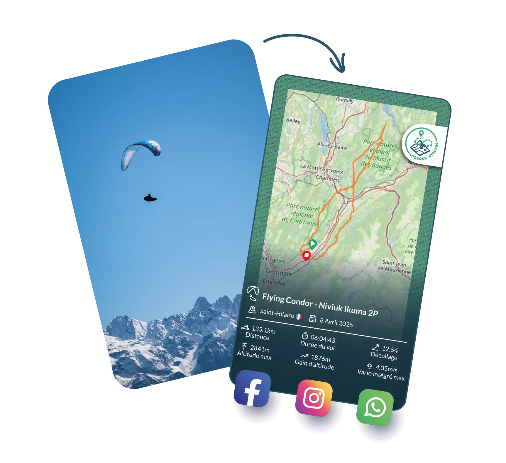 Al aterrizar, ver tu pista, explorar tus estadísticas y compartir tus mejores vuelos. También registra automáticamente tus horas de vuelo para ayudarte a controlar el desgaste de tus velas.