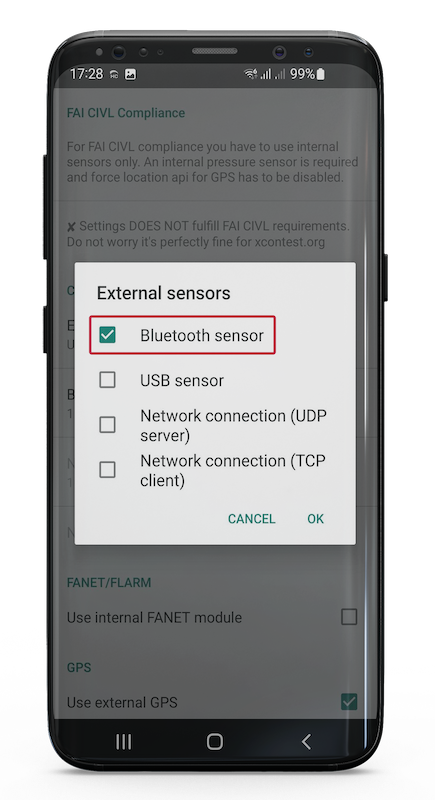 Assicurarsi che il Bluetooth dello smartphone sia attivato e che XCTrack sia installato sullo smartphone.