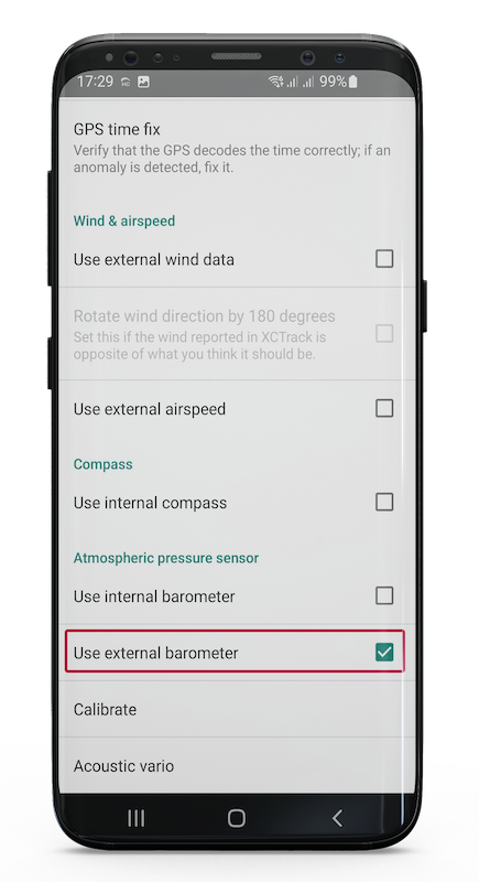 9. Per entrambi gli strumenti: alla voce "Sensore di pressione atmosferica", spuntare "Usa barometro esterno".
