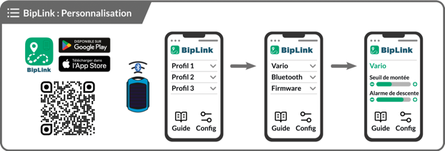 BipLink - aplikacja konfiguracyjna : Konfiguracja BlueBip nie może być prostsza! Wystarczy pobrać aplikacjęaplikacja BipLink na smartfonie (Android lub iOS). Wszystkie ustawienia są płynnie wprowadzane przez Bluetooth.