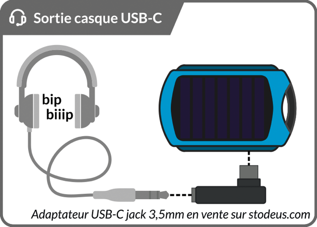 Wyjście słuchawkowe : Jeśli chcesz podłączyć słuchawki lub słuchawki douszne, aby odbierać sygnały dźwiękowe bezpośrednio do uszu, musisz użyć przyciskuAdapter Stodeus USB-C do jack 3,5 mm.