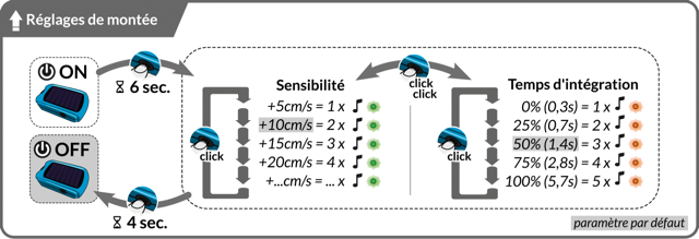 Ustawienia sygnału dźwiękowego Climb : Czułość narastania i czas integracji można łatwo ustawić z poziomuaplikacja BipLink.